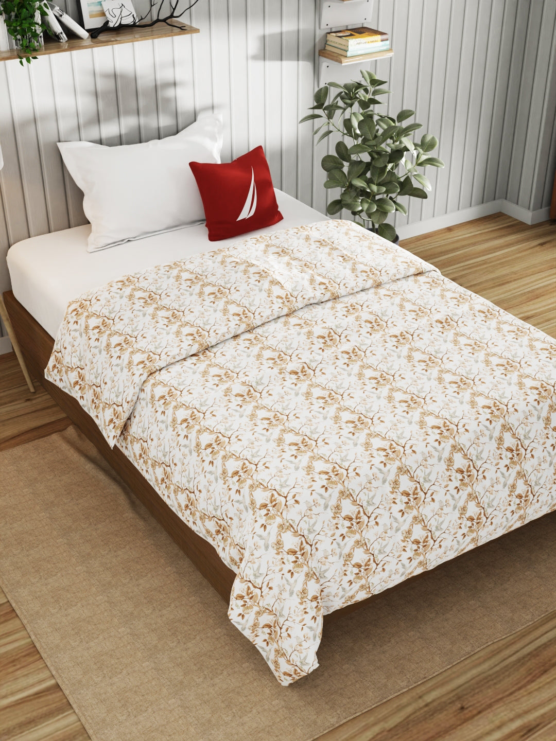 nautica marina bay dohars gives an elagnt and luxurious look to your room. it is made with 100% cotton flannel insert making it temperature controlled as per your body temprature. it's outer shell is made of 100% egyptian satin cotton fabric which gives you silky smooth feeling against your skin. it is slim and lightweight weighing 250 gsm in total. it has a an anti-bacterial finishing which helps to keep you and your loved one safe. these blankets are suitable for use in ac room and in all seasons. it will keep you warm and cozy feeling. elegant prints does not fade away even after daily use. this dohar gets softer with every wash. it's machine washable and easy to maintain.