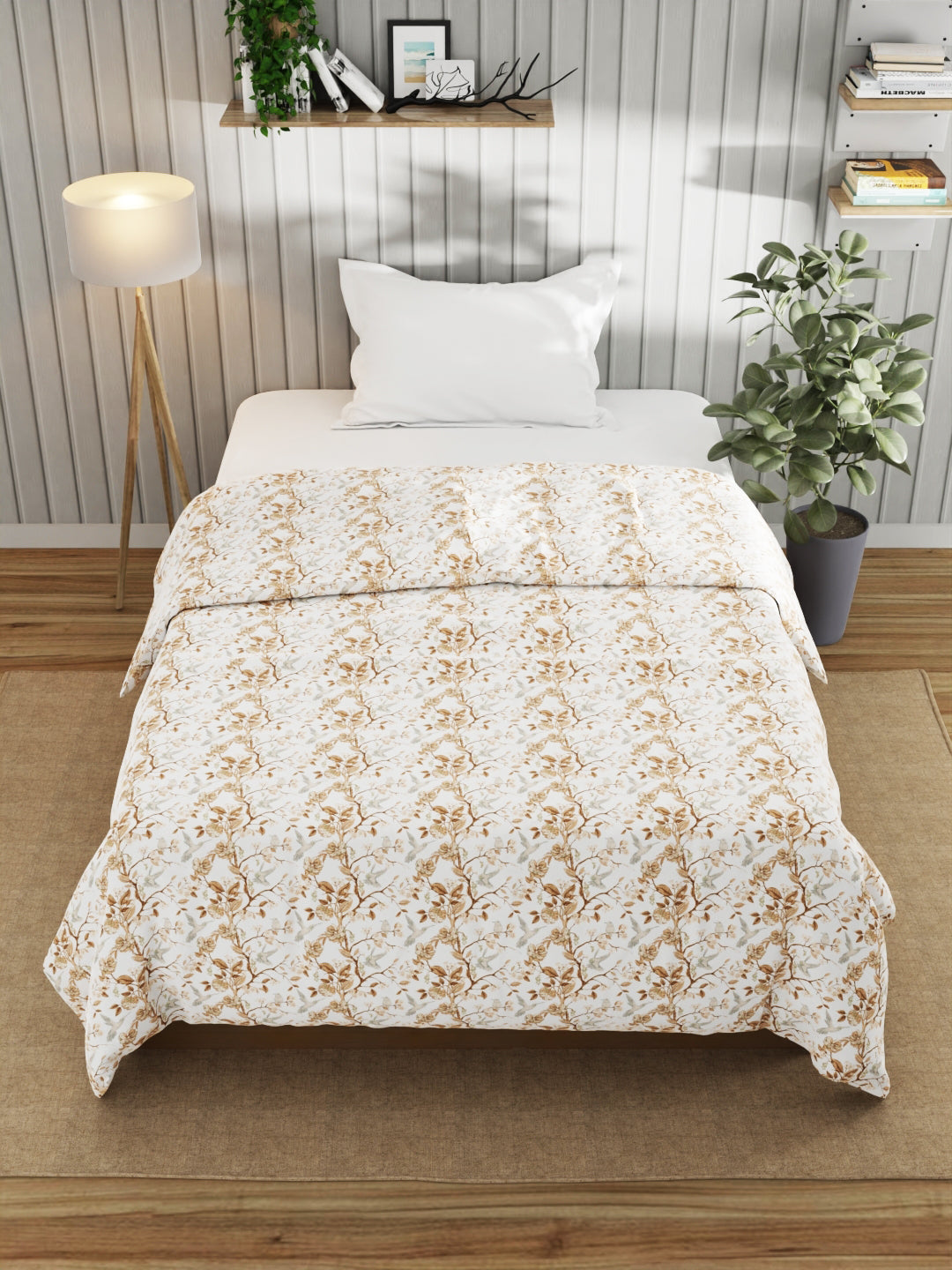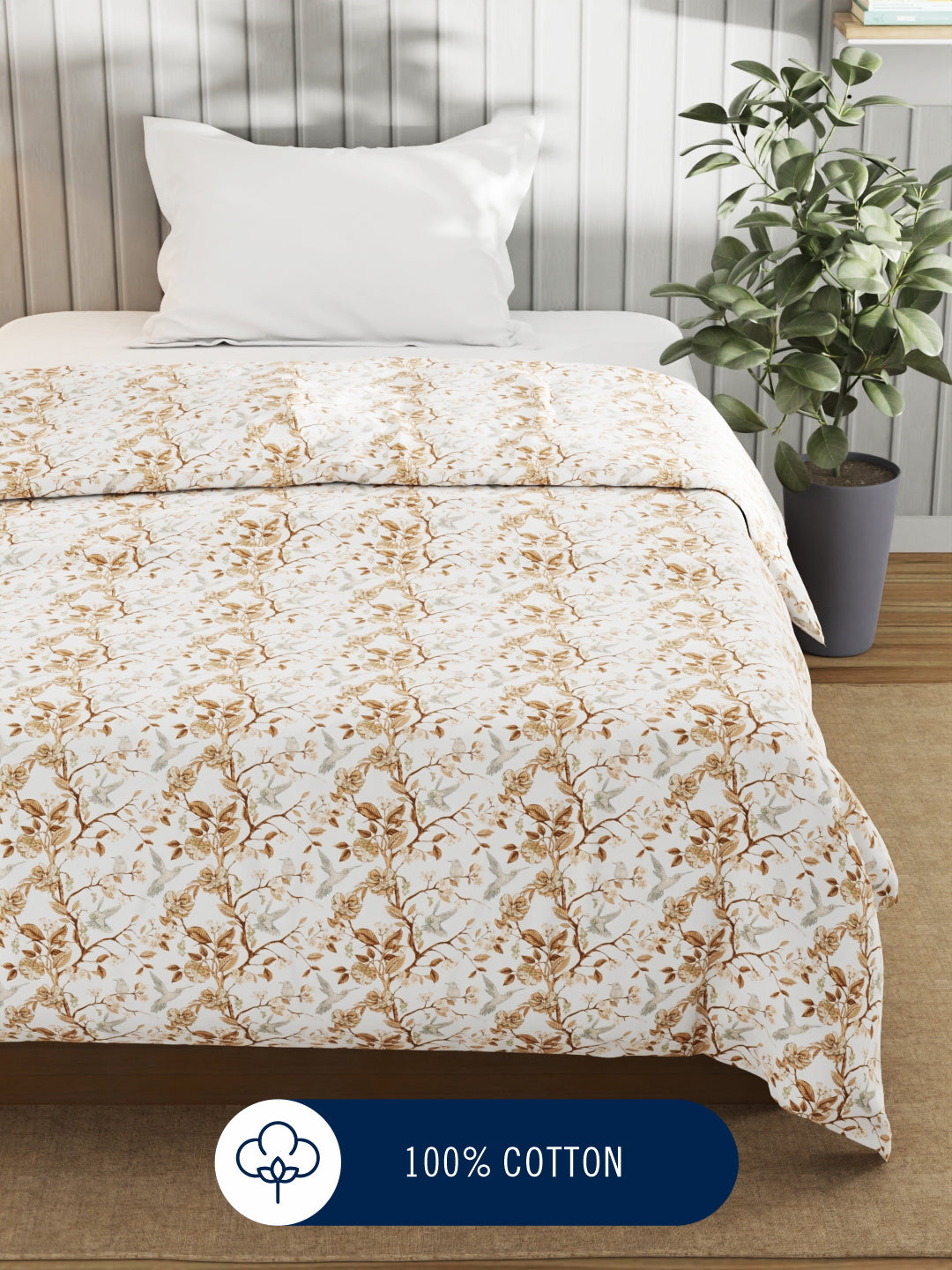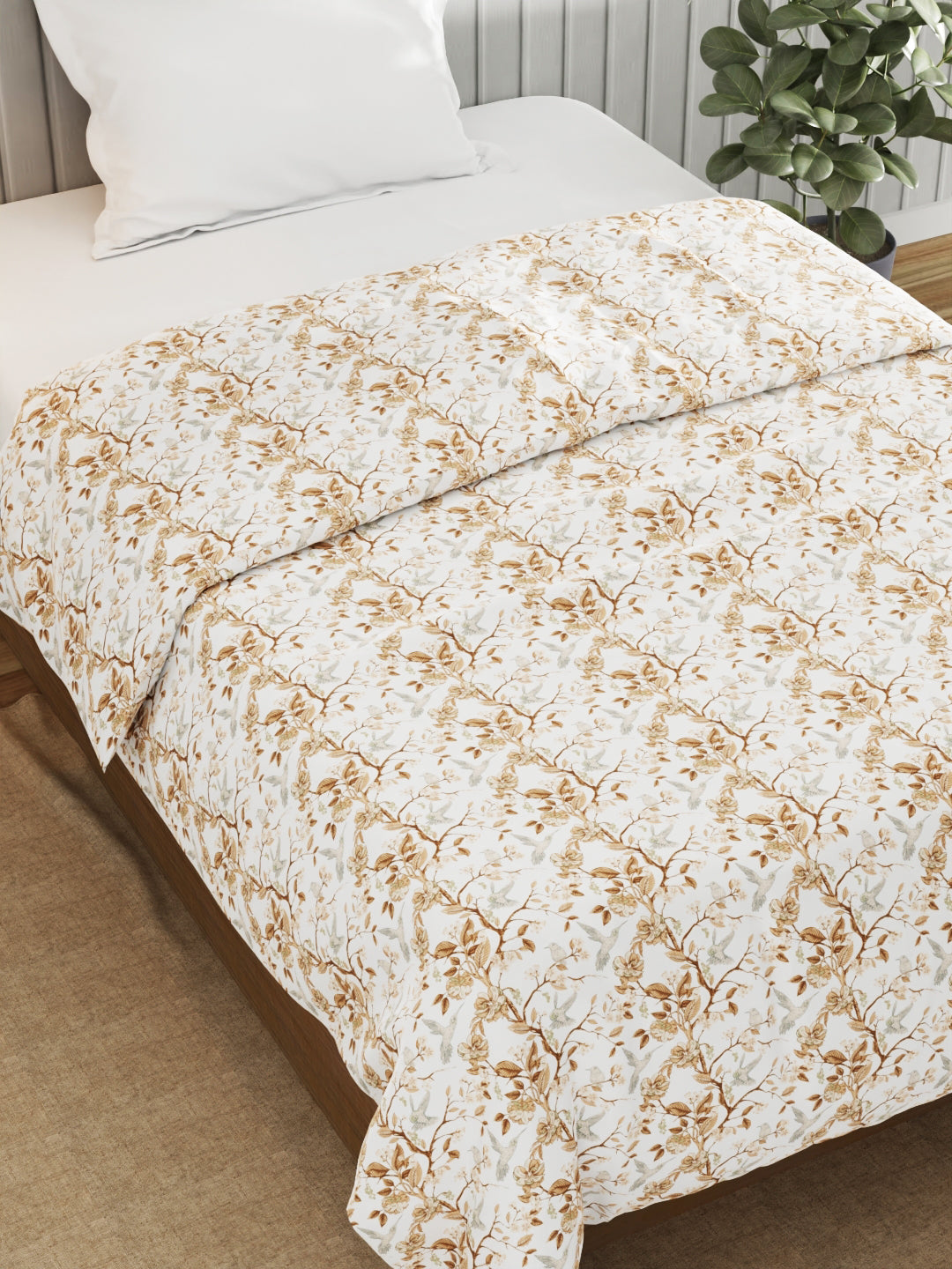Super Fine 100% Egyptian Satin Cotton Blanket With Pure Cotton Flannel Filling (floral-ivory)