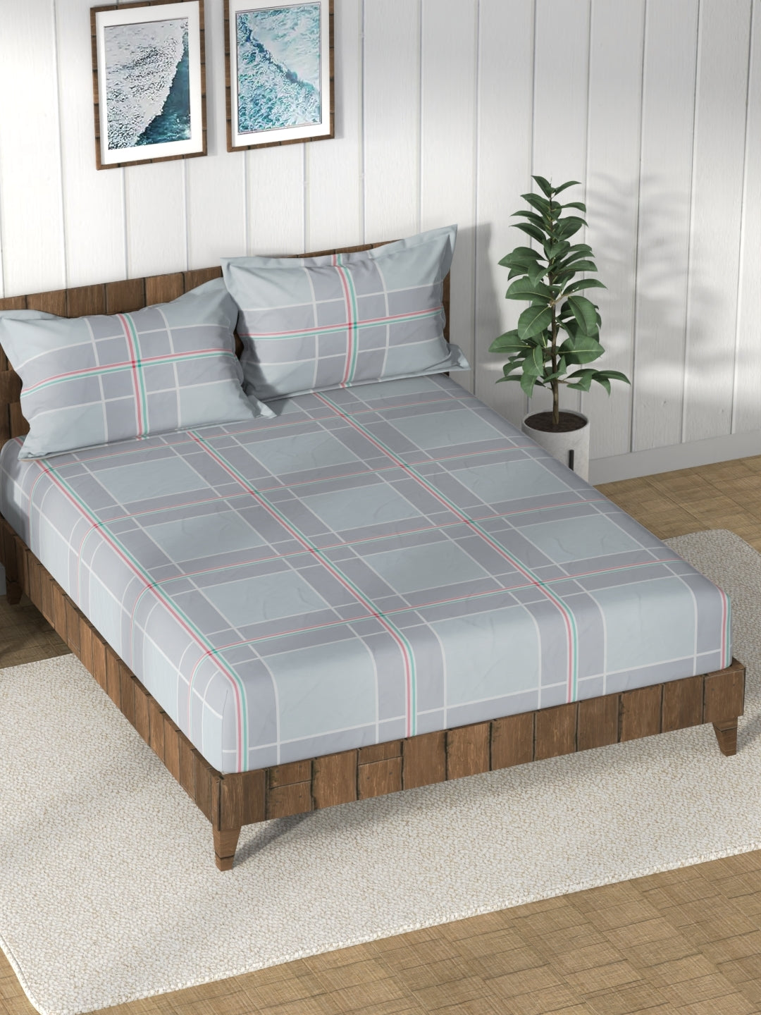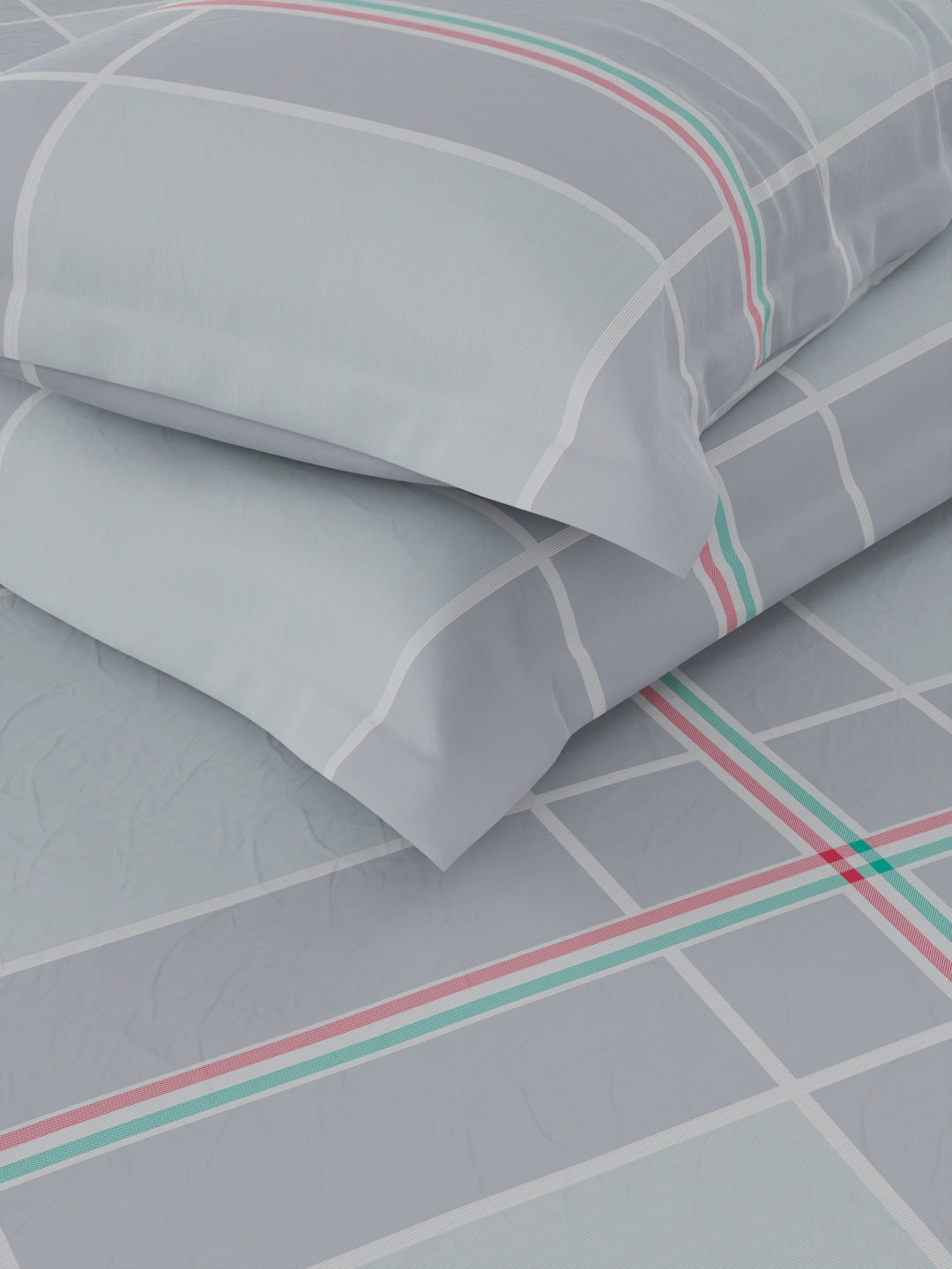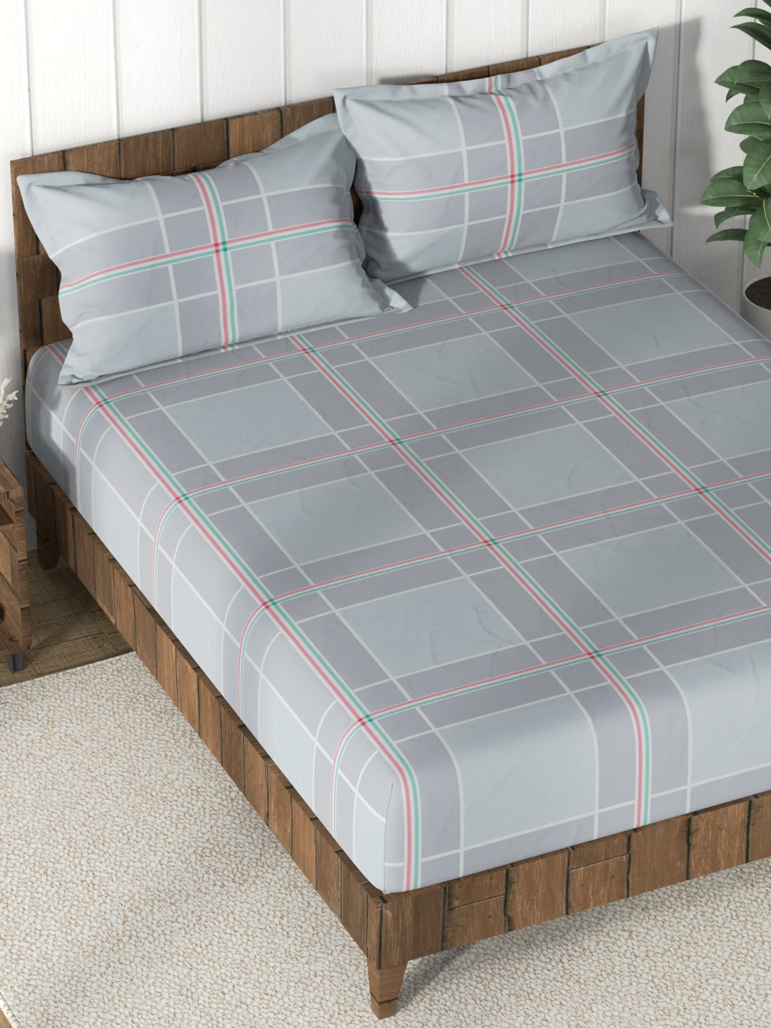 Super Soft 100% Cotton King Bedsheet And 2 Pillow Covers (checks-coolgrey)
