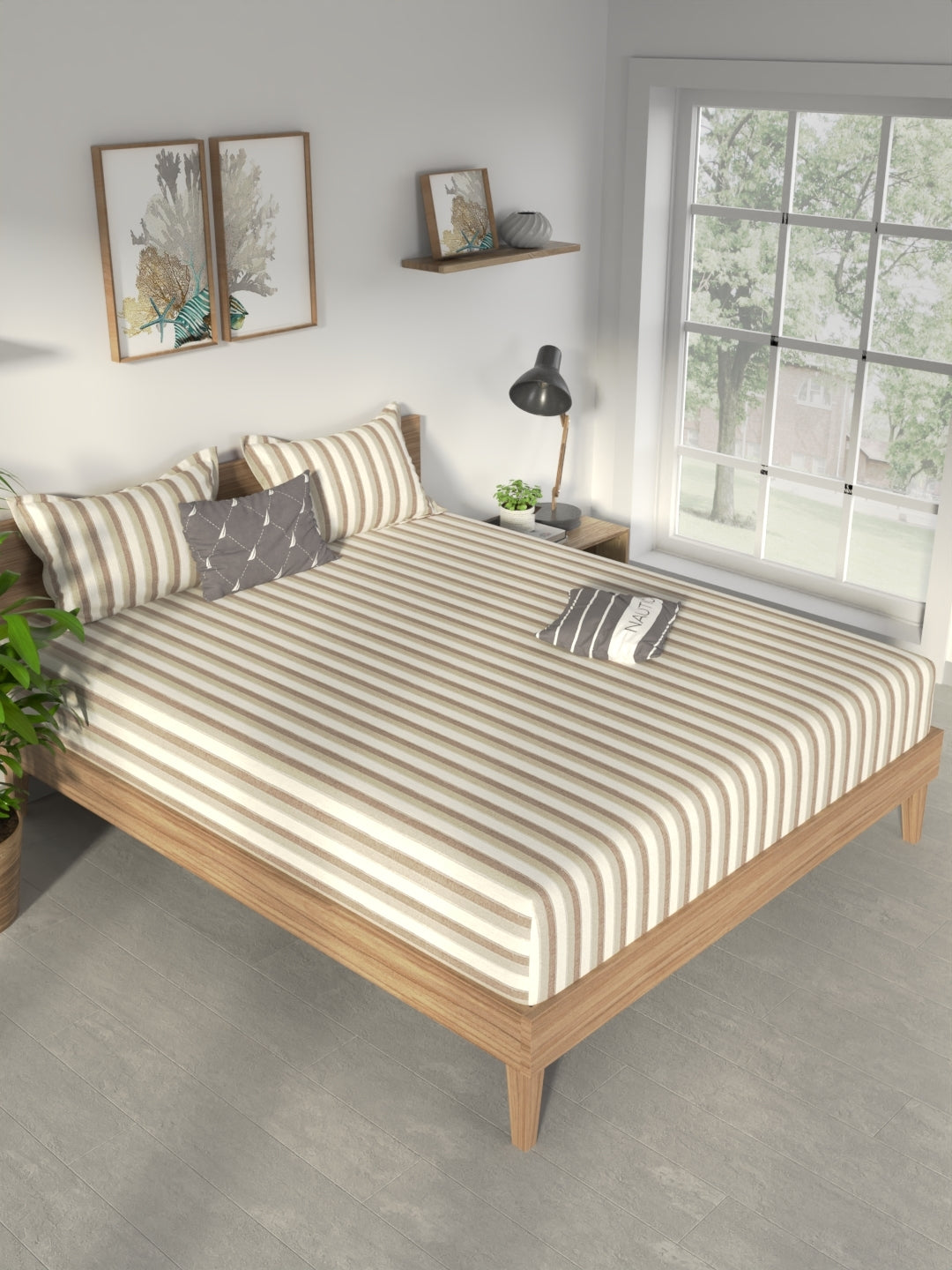 100% Premium Cotton (stripe-sage/brown)
