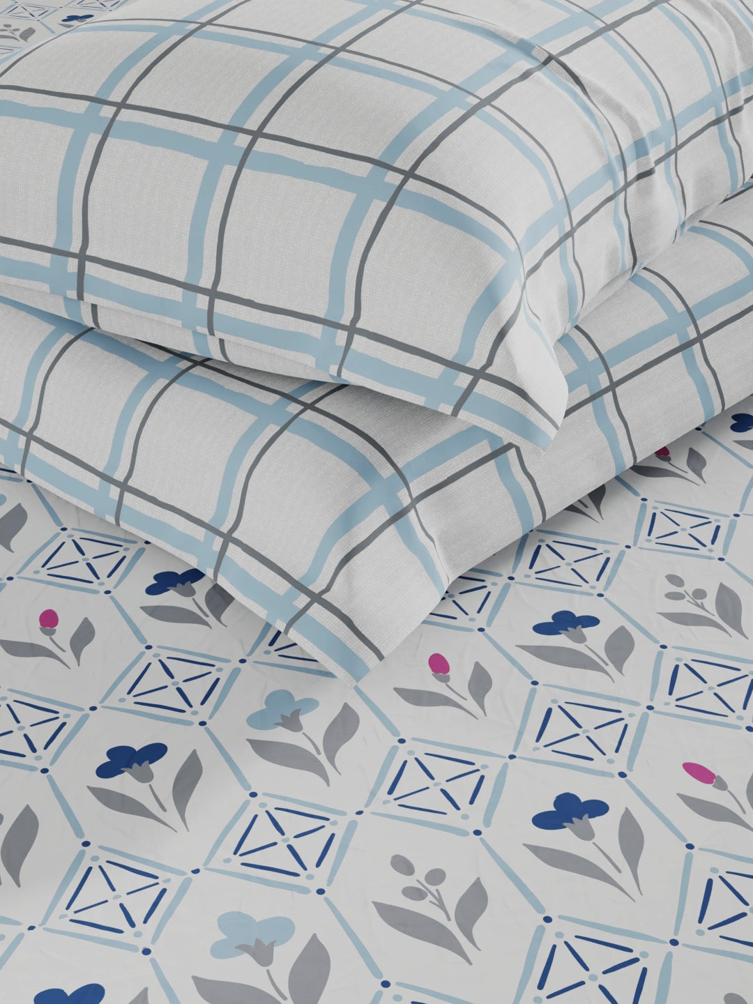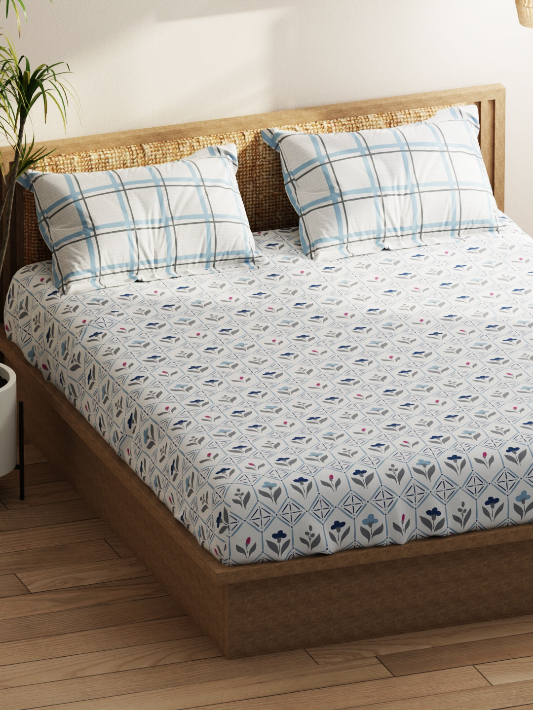 Extra Smooth Double Comforter With 1 Double Bedsheet 2 Pillow Covers, For Ac Room (floral-ivory/blue)