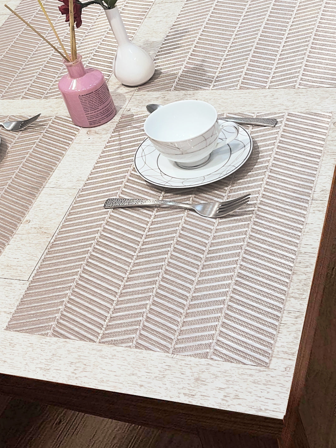 these mats are luxuriously thick & classy. these are made from recycled plastic material - you are in-turn supporting saving earth from plastic wastage. the woven pattern makes these mats have a designer feel & pvc material makes it easy to clean. comes in set of 6 pc - for your luxurious dining experience.
