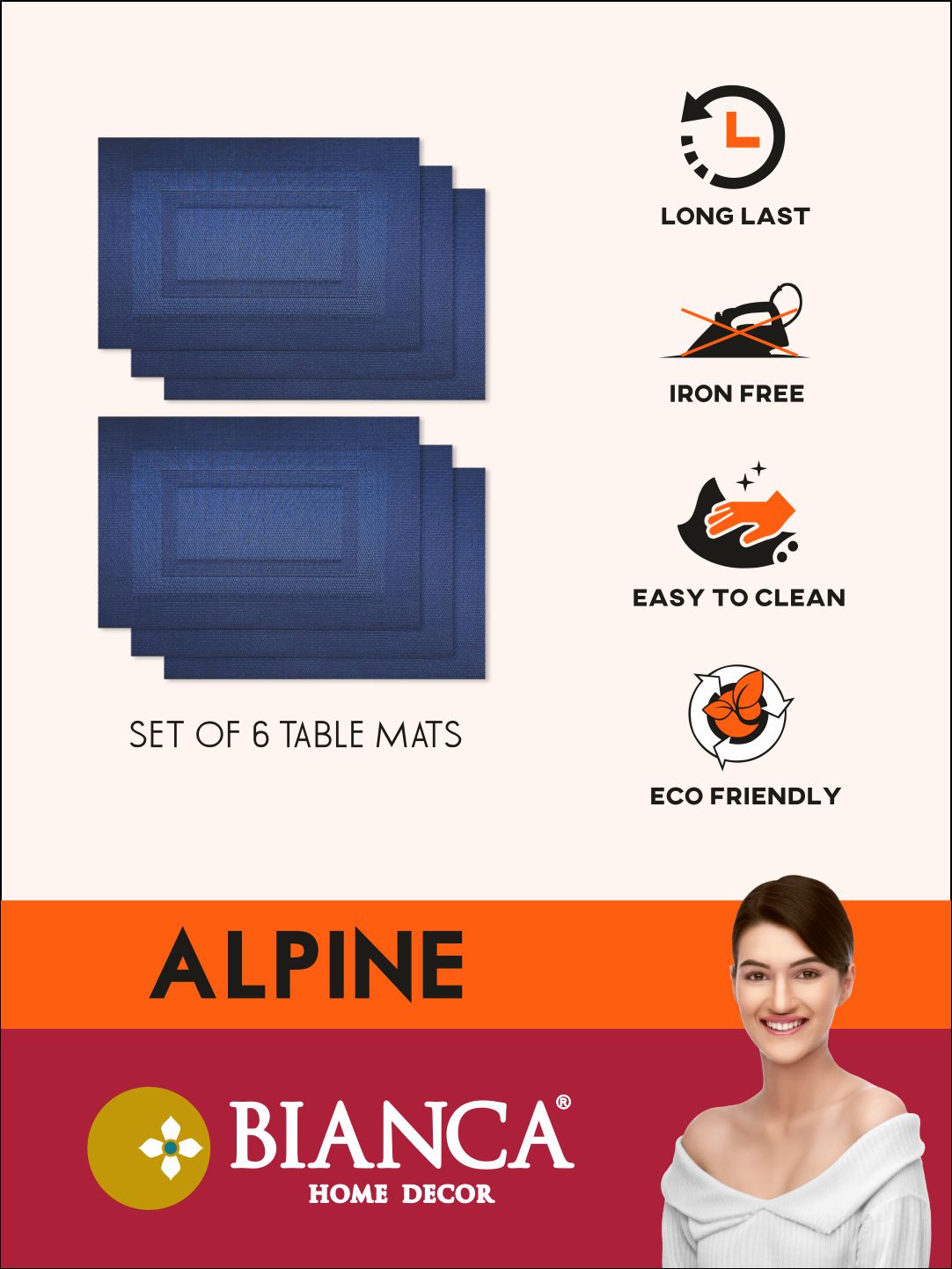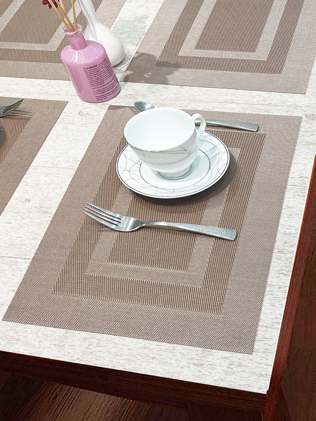 enhance your table with these placemats. comes in set of 6 pcs. specifically designed to give an elegant 5-star hotel look. these are made from recycled plastic material - you are in-turn supporting saving earth from plastic wastage. these are very easy to maintain & clean.