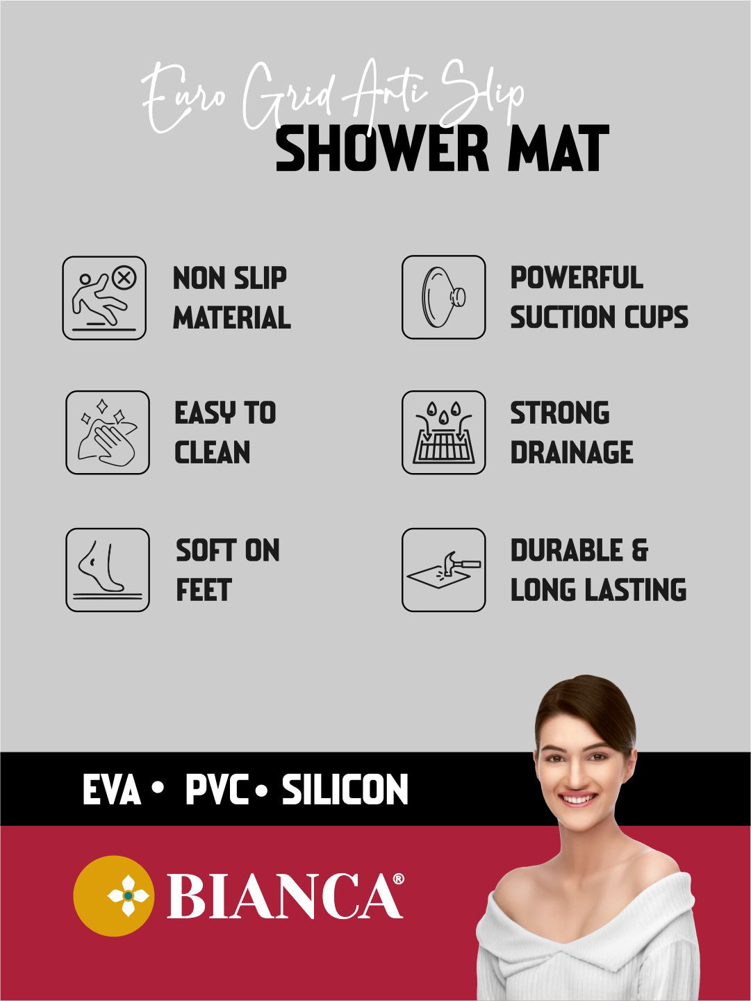 lLuxury anti-slip shower mat for bathroom and kitchen—safety meets sophistication. Transform your everyday routine with our luxury anti-slip shower mat, a perfect blend of elegance and functionality. Crafted with premium, durable materials and a sleek design, this mat brings hotel-style comfort and safety to your home. Redefine your space with this luxury mat—where safety meets style, every step of the way.