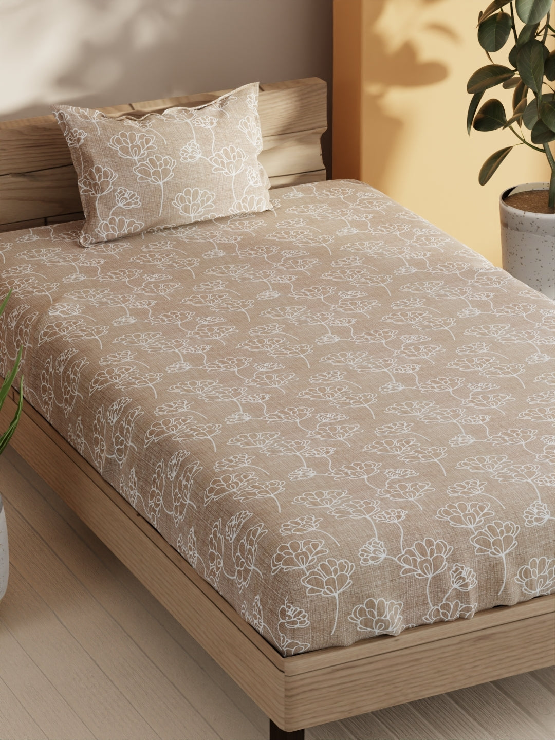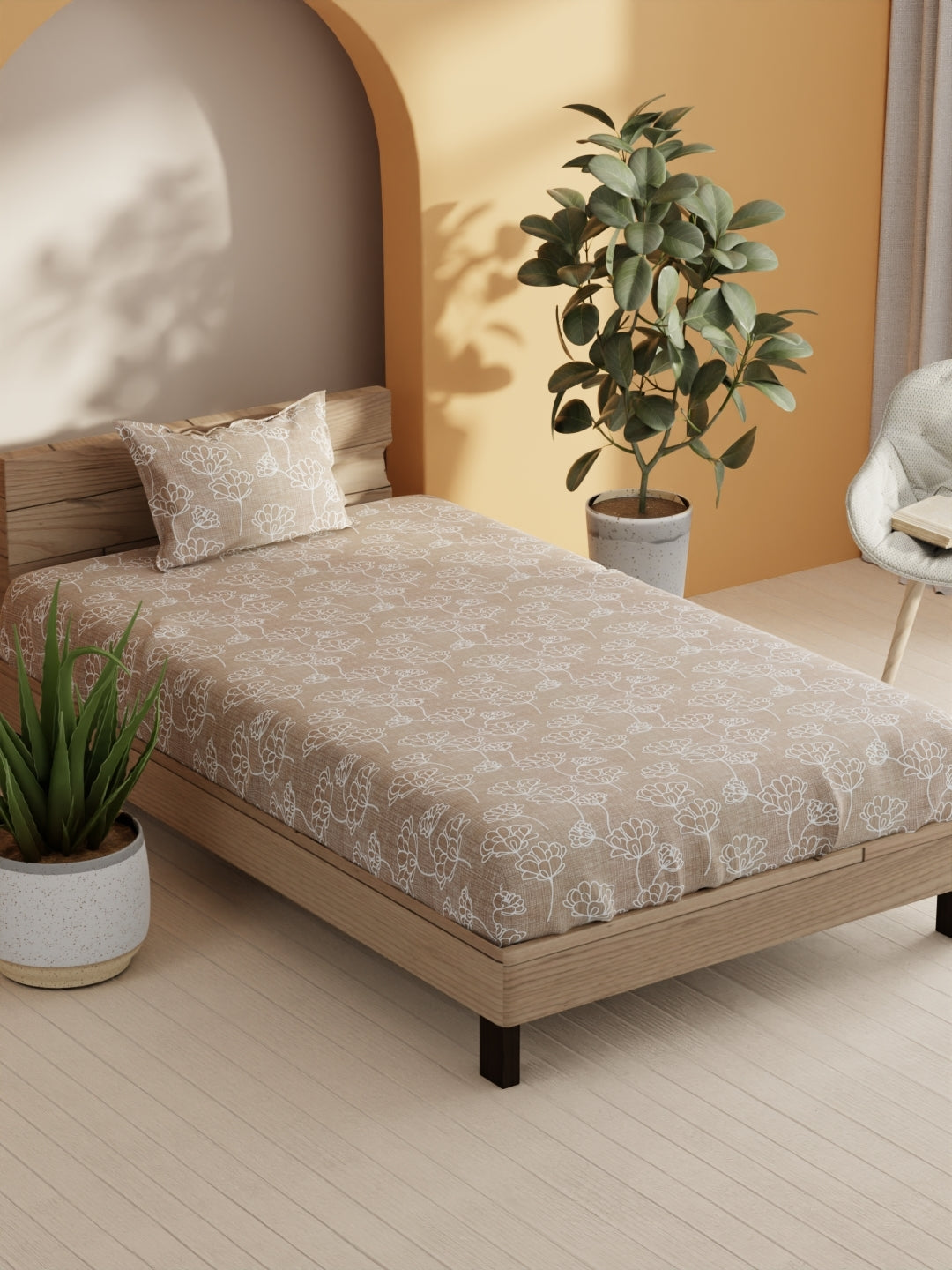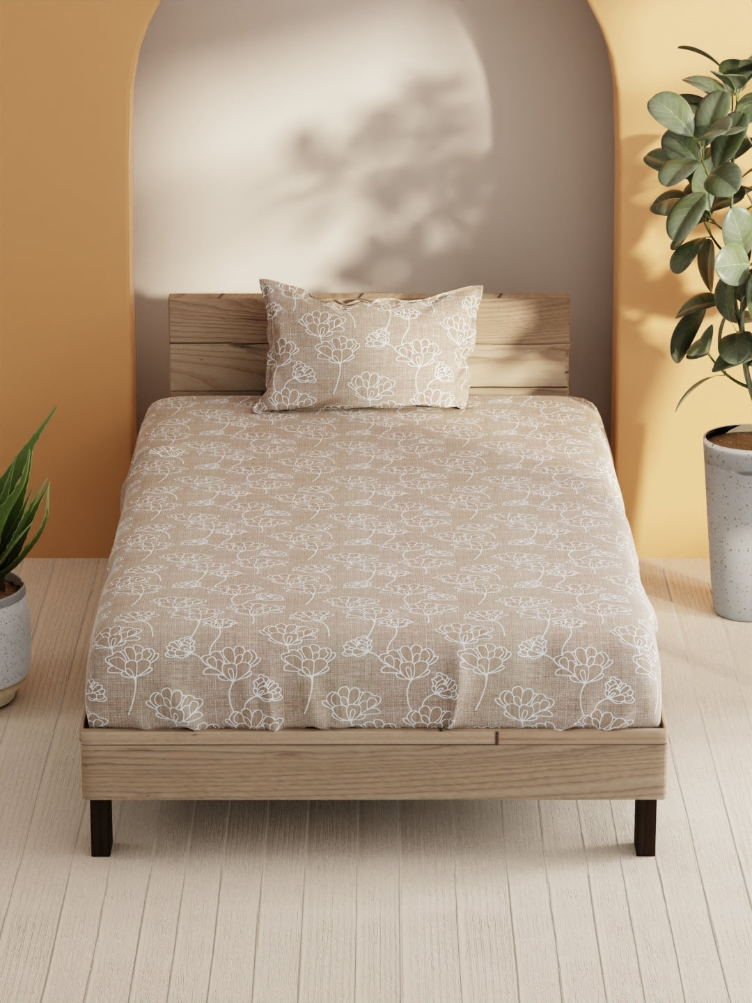 This 100% cotton, beautiful bed set adds charm to your bedroom. Made for a single-size bed, it includes one pillow cover. Soft and luxurious, it's made from pure cotton with a high thread count and eco-friendly prints to ensure comfort and style. It is machine washable and easy to maintain.