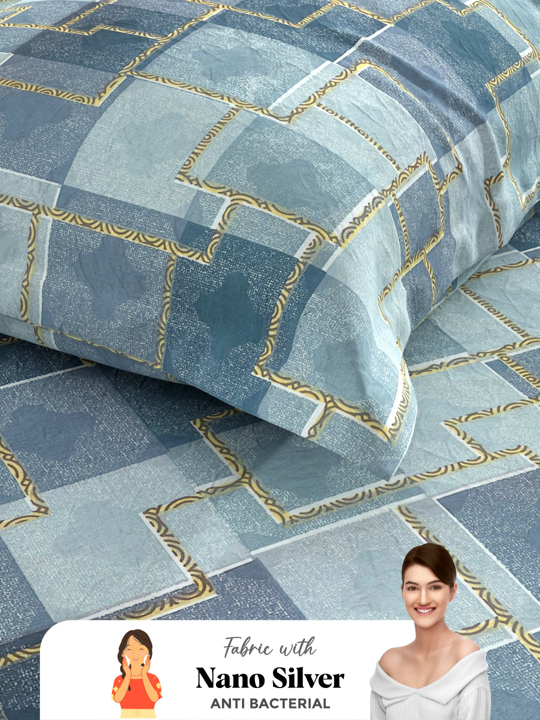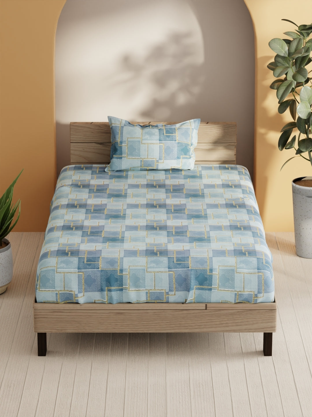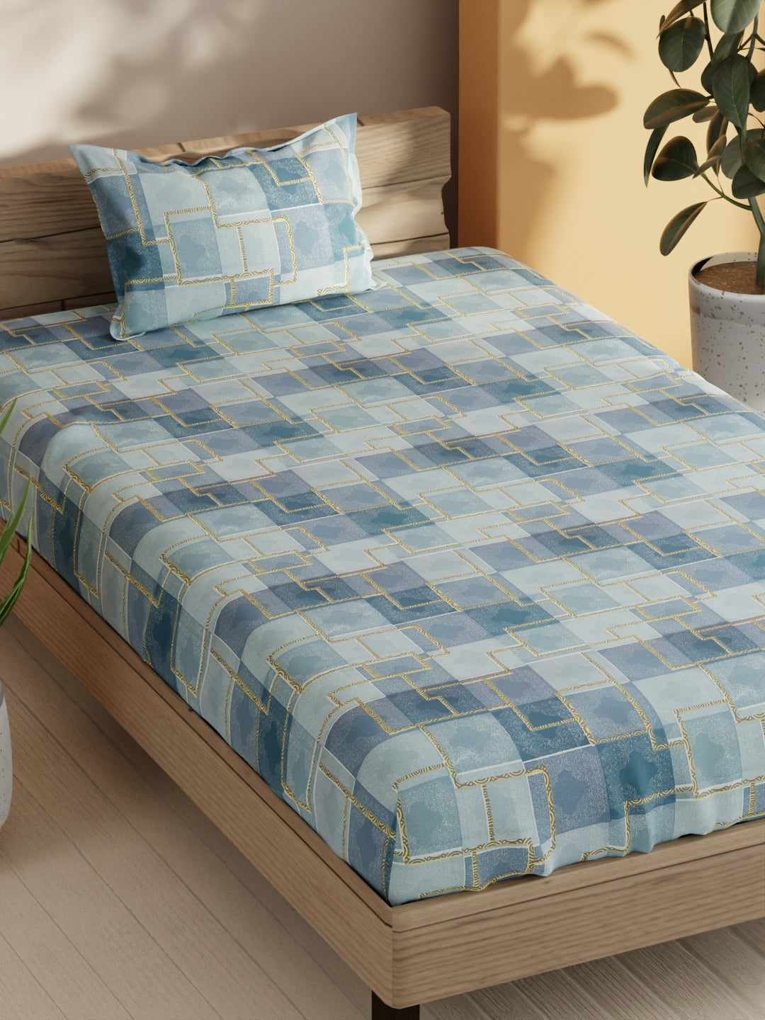 This 100% cotton, beautiful bed set adds charm to your bedroom. Made for a single-size bed, it includes one pillow cover. Soft and luxurious, it's made from pure cotton with a high thread count and eco-friendly prints to ensure comfort and style. It is machine washable and easy to maintain.