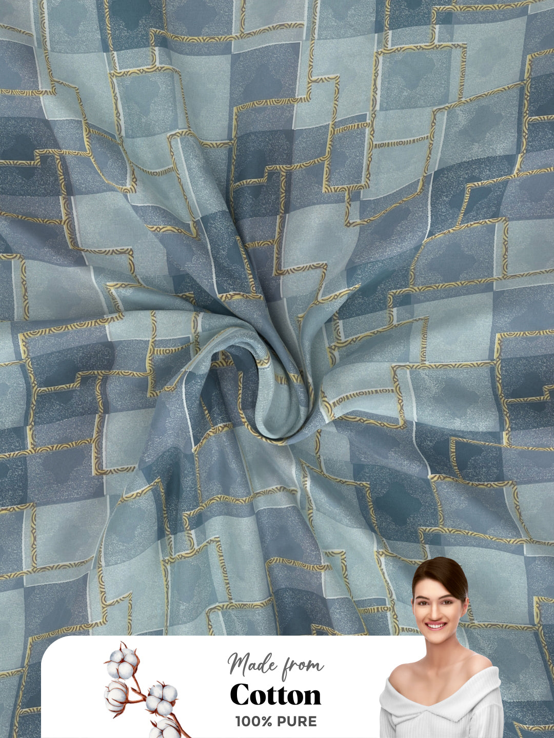 Soft 100% Natural Cotton (geometric-blue)