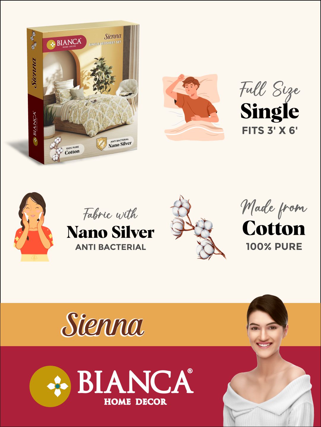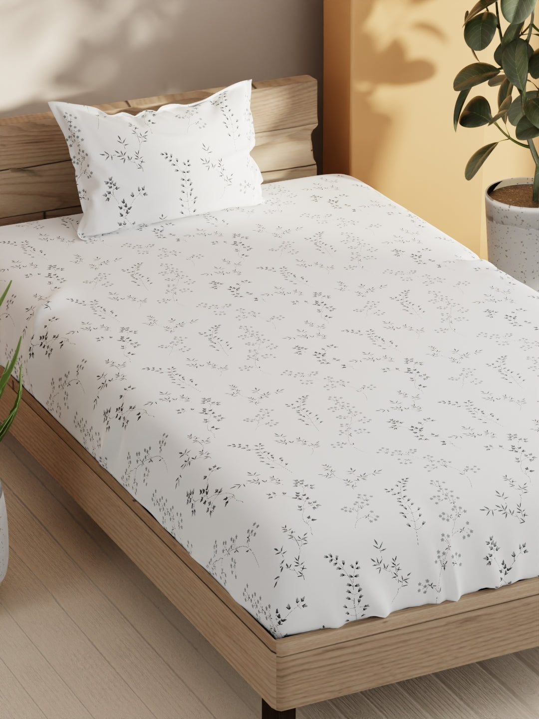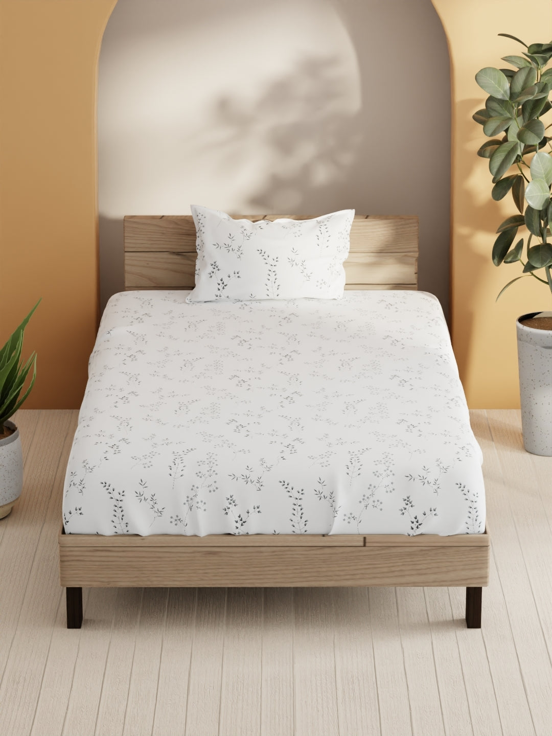 This 100% cotton, beautiful bed set adds charm to your bedroom. Made for a single-size bed, it includes one pillow cover. Soft and luxurious, it's made from pure cotton with a high thread count and eco-friendly prints to ensure comfort and style. It is machine washable and easy to maintain.