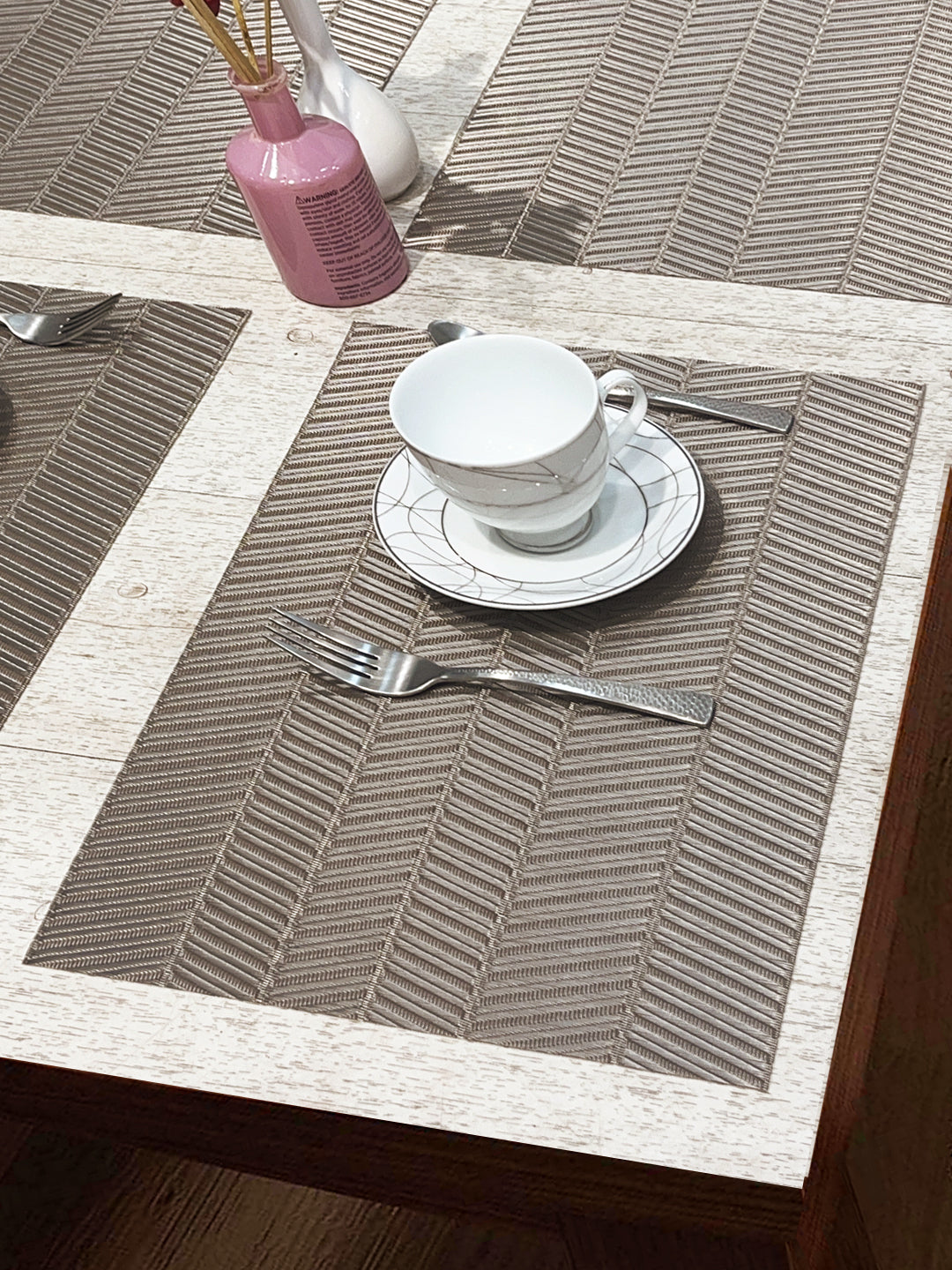 these mats are luxuriously thick & classy. these are made from recycled plastic material - you are in-turn supporting saving earth from plastic wastage. the woven pattern makes these mats have a designer feel & pvc material makes it easy to clean. comes in set of 6 pc - for your luxurious dining experience.