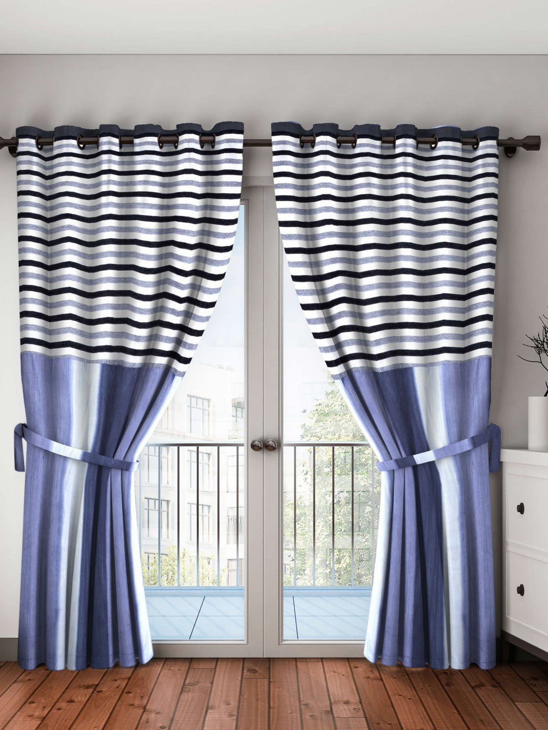Designer Textured Polyester Curtain In Fancy Modern Design With Eyelets (mix-match-black)